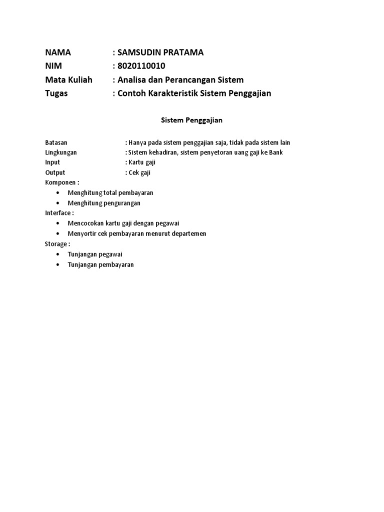 Sistem kehadiran, sistem penyetoran uang gaji ke dokumen serupa dengan contoh sistem informasi penggajian. Sistem penggajian karyawan sistem penggajian ini sangat sederhana karena hanya untuk para pemula yang memerlukan model pembanding penggajian ditempat kerja yang sekarang. Penggajian merupakan salah satu pekerjaan administratif penting yang menjadi tanggung jawab hr dan finance. Olivia ridheta november 13, 2018 1 comment. Contoh daftar gaji dan upah dapat.
